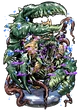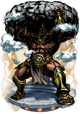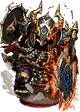 Typhon (Greek: Τυφῶν), also Typhoeus, was the most deadly monster of Greek mythology. The last son of Gaia, fathered by Tartarus, he was known as the "Father of All Monsters"; his wife Echidna was likewise the "Mother of All Monsters." His human upper half reached as high as the stars, and his hands reached east and west. His bottom half consisted of gigantic viper coils that could reach the top of his head when stretched out and constantly made a hissing noise. He tried to kill Zeus, but is finally defeated by the King of Gods, who traps him underneath Mount Etna.