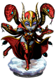 Empusa (Ancient Greek: Ἔμπουσα, Empousā, of unknown meaning) is a demigoddess of Greek mythology. Empusa was the beautiful daughter of Hecate, the Goddess of sorcery and fire (among other concepts). She feasted on blood by seducing young men as they slept (similar to the Succubus), and then drinking their blood and eating their flesh. Empusa is often depicted as wearing brazen slippers and bearing flaming hair. In later incarnations she appeared as a species of monsters commanded by Hecate.