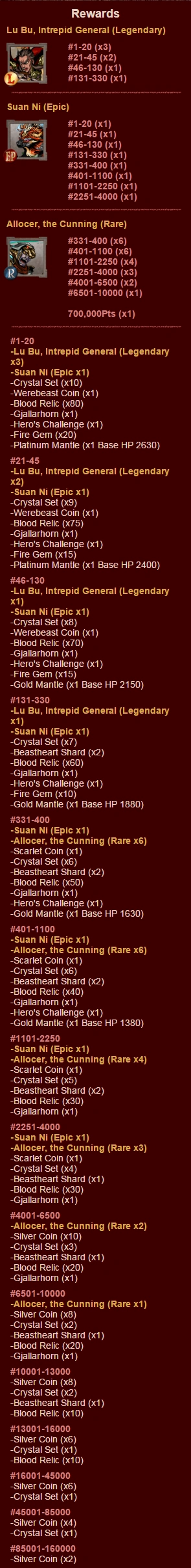 - Allocer, the Cunning is also rewarded on 700,000 event points.